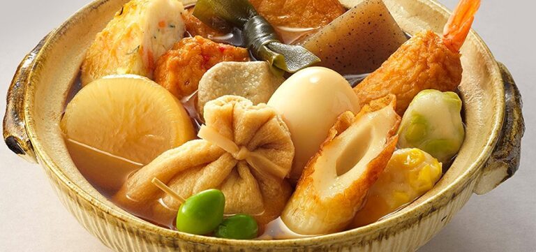 Les ingrédients varient en fonction des régions mais sont principalement à base de poisson et de légumes dont le daikon (radis blanc japonais).