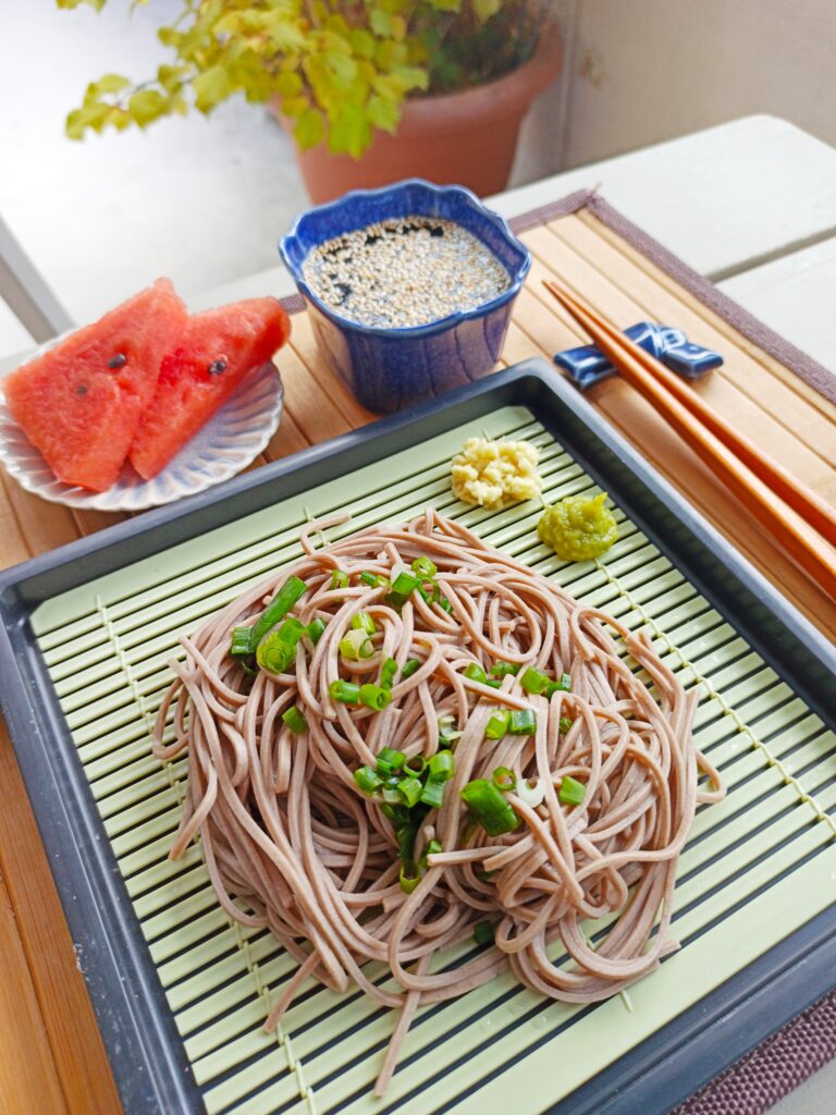 Et en parlant de nouilles, les japonais ont une façon surprenante (pour nous occidentaux) de les manger en été. Ici nous sommes habitués au grand bol de ramen brulantes dans leur bouillon savoureux, en été c’est glacées que les nouilles se mangent.