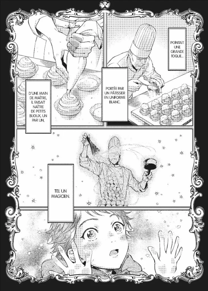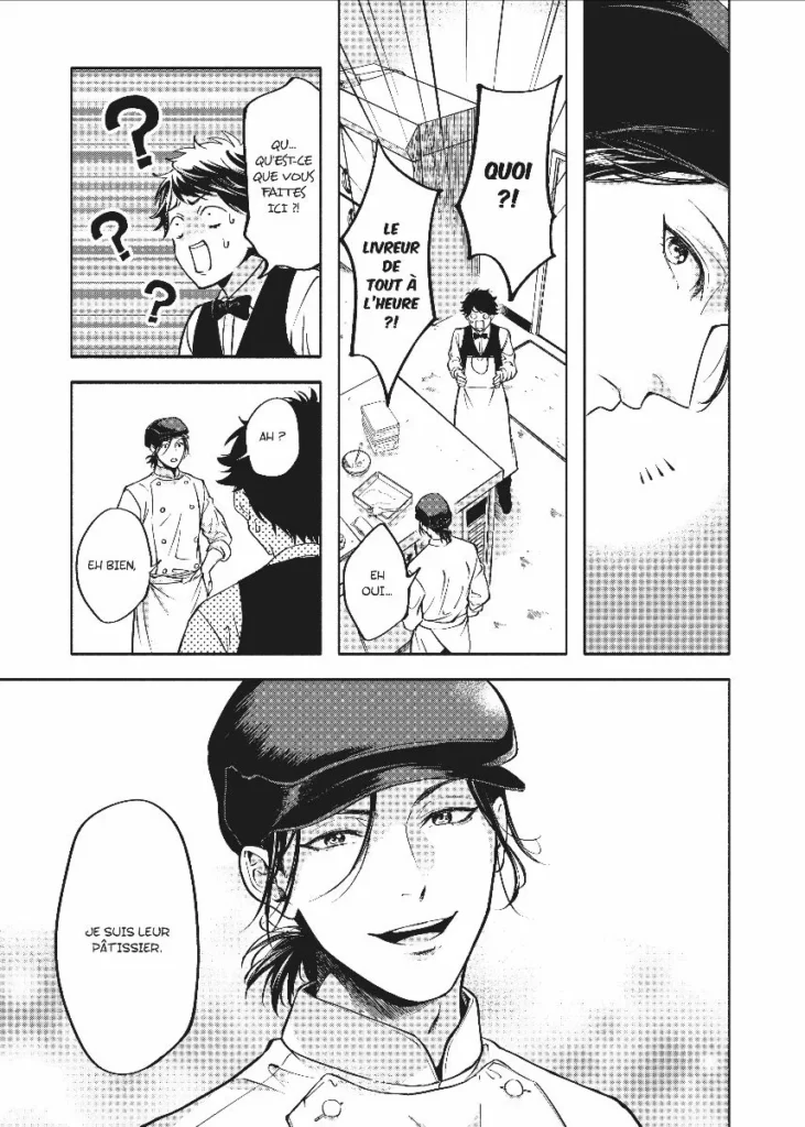Les graphismes sont vraiment beaux, notamment les dessins de gâteaux, qui m'ont mis l'eau à la bouche, tout au long de ma lecture ! La pâtisserie est vraiment mise en avant, et n'est pas juste là pour faire décors. J'ai vraiment aimé cet univers et l'envie des employés d'aider leur patron.