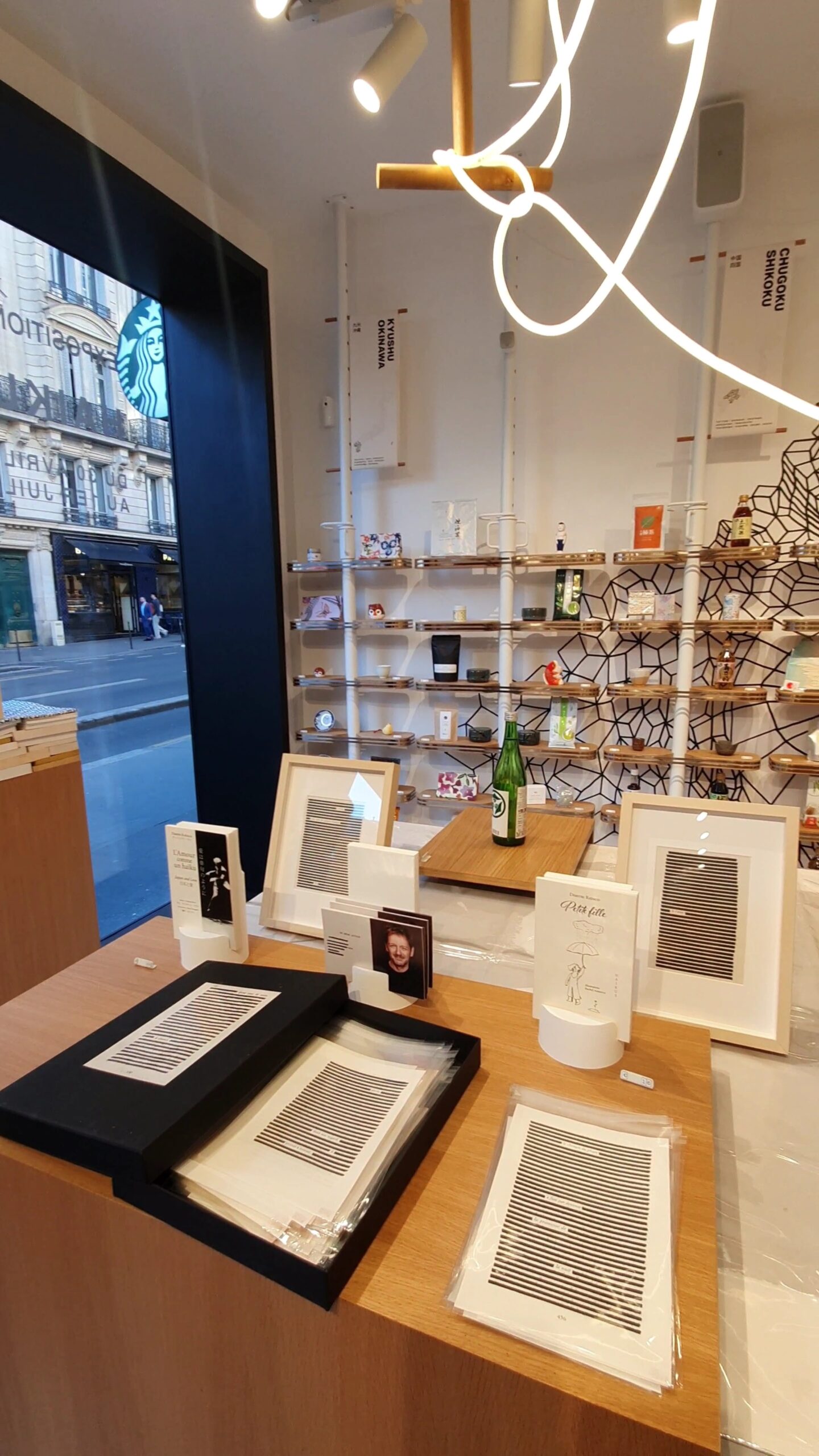 Dans le concept store HIS Paris, dédié au Japon et à l’art de vivre nippon, les haïkus de Dimitri prennent place entre calligraphie, artisanat, et produits gourmets.