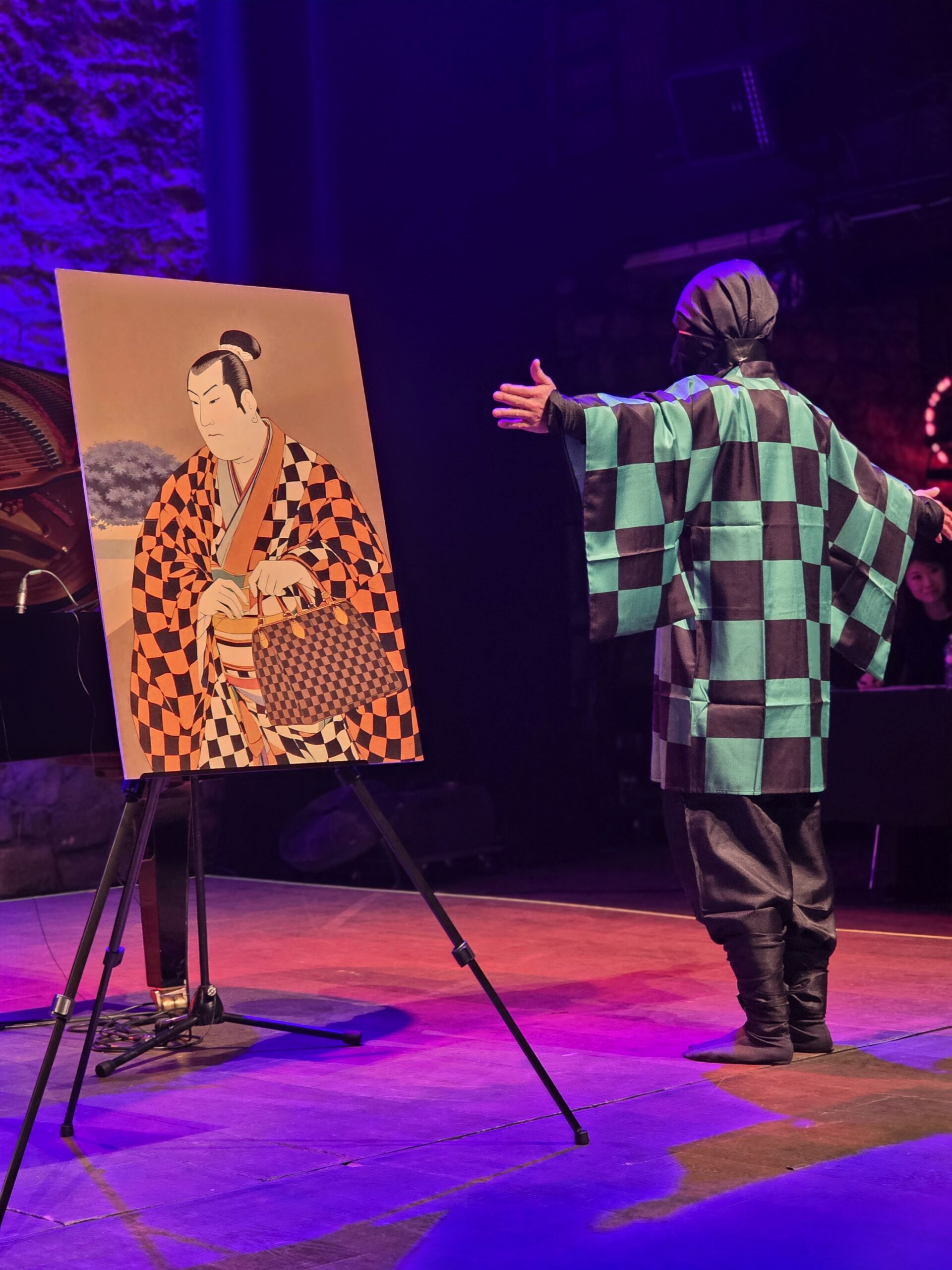 Une autre séquence autour du motif à damier, emblématique de l’esthétique japonaise, donne lieu à un échange complice avec le public, prolongeant ce dialogue constant entre culture et musique.