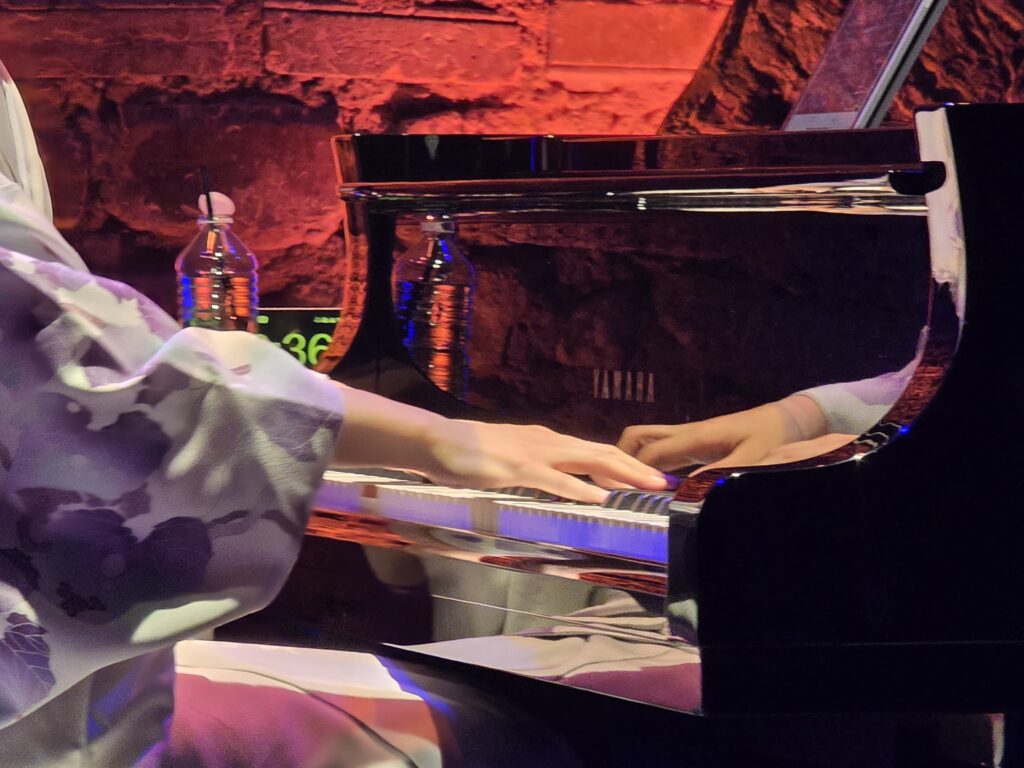 Très vite, la pianiste installe une atmosphère chaleureuse et sincère. Souriante et profondément connectée à son public, elle ne se contente pas de jouer du piano : elle partage un moment, crée un lien et transforme ce concert parisien en véritable rencontre.
