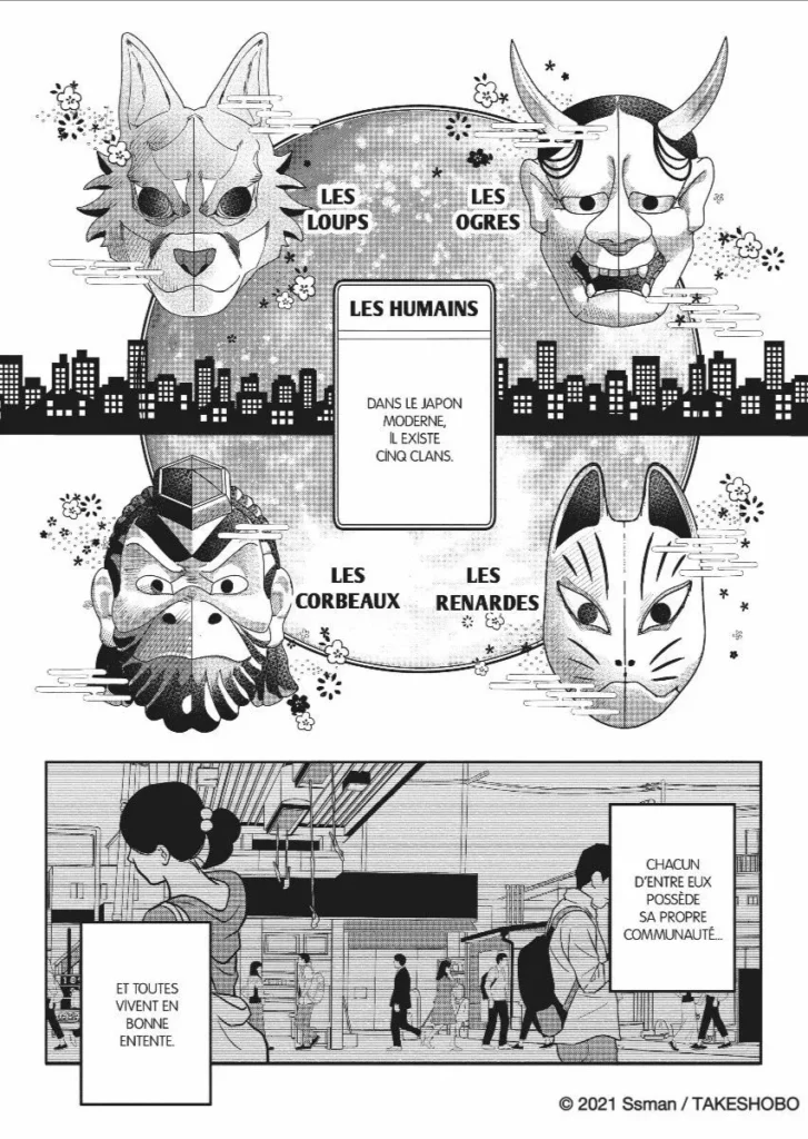 Dans ce monde cohabitent cinq clans : les ogres, les loups, les renardes, les corbeaux et les humains, qui vivent tous en harmonie. Au sein de celui des ogres, la famille Shinonome est particulièrement réputée, et lorsque l’un de ses héritiers cherche une compagne, la société entière s’agite. Tous sauf peut-être Hana Mochizuki, une jeune femme gentille et droite, pour qui le mariage est le cadet de ses soucis. Alors quand un beau motard débarque dans sa vie en lui demandant de l’épouser, affirmant que le destin en a décidé ainsi, elle n’a pas l’intention de gober ça sans réagir !
