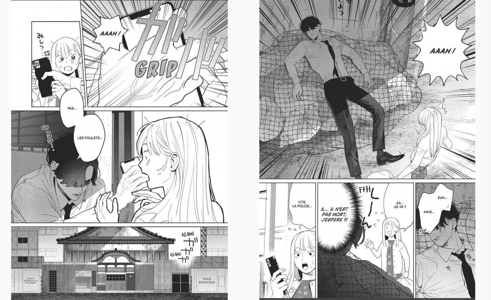 Le manga joue justement sur ce contraste. Miyako se montre volontaire mais parfois dépassée par les événements, tandis que Hebizuka, derrière son allure intimidante, laisse peu à peu apparaître un côté plus attentionné.
