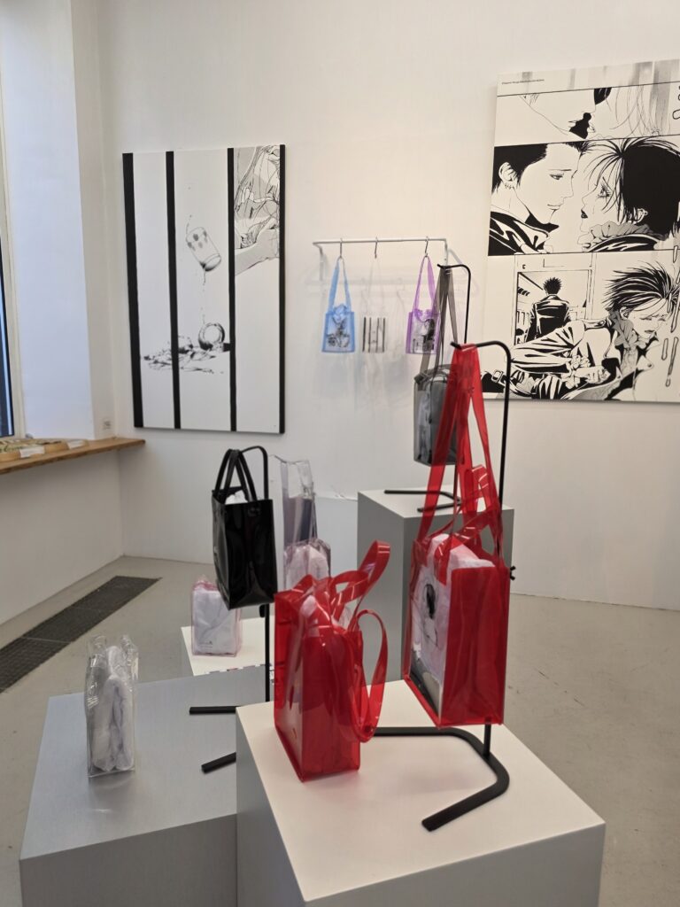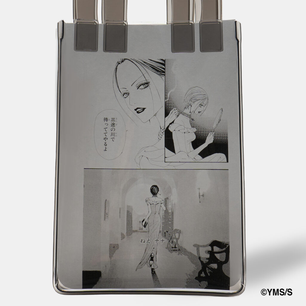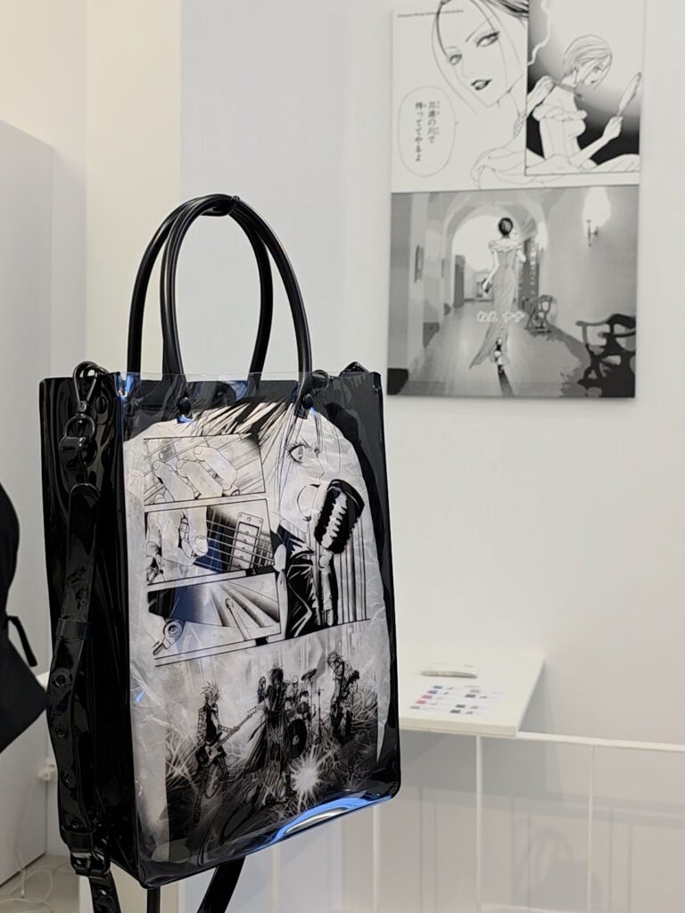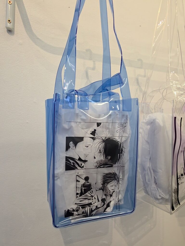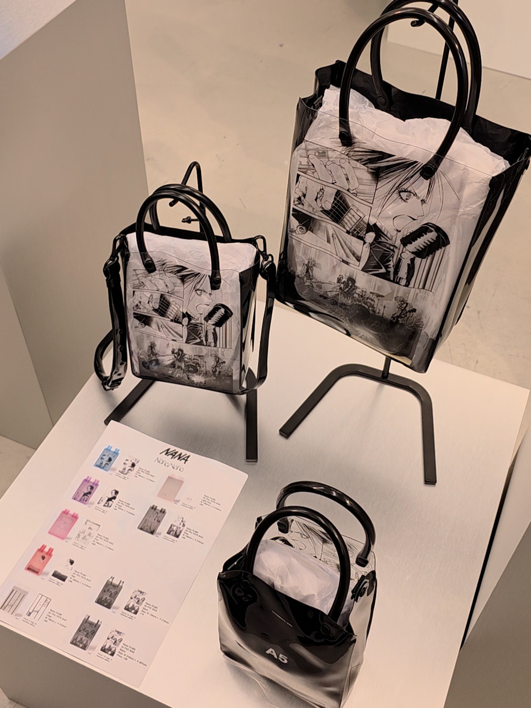 nana-nana, c’est l’esthétique “paper size” et des matières qui claquent visuellement : PVC, TPU, jeux de transparence. La collab reprend ces codes et les teinte de l’esprit de NANA : rock, punk, romantique, urbain. On retrouve des tote bags formats A5 et A4, en versions noires, transparentes ou colorées (rose, violet, bleu, gris…), avec des visuels tirés de l’univers du manga. Simple, efficace, portable au quotidien.