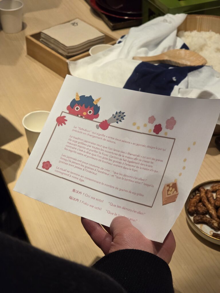 Supports pédagogiques, échanges avec les intervenants, attention portée aux détails : tout contribue à rendre l’expérience accessible, même pour celles et ceux qui découvrent Setsubun pour la première fois.