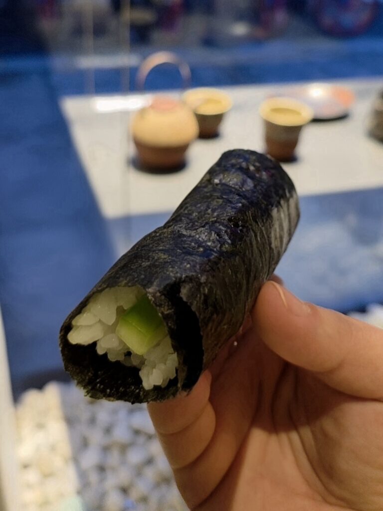 La dégustation de l’ehō-maki s’est faite dans le respect strict de la tradition : debout, en silence, tournés vers la direction porte-bonheur de l’année, le nord-nord-est. Un moment à la fois simple et solennel, qui invite à l’introspection autant qu’au partage.