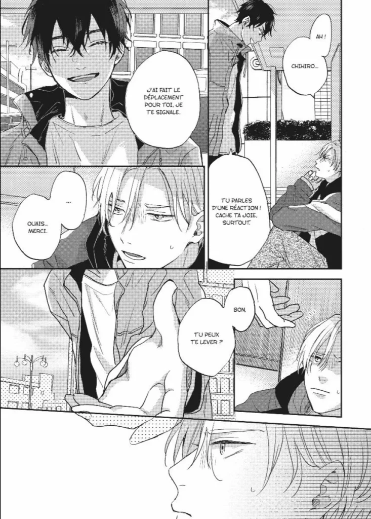 Chihiro, lui, est un jeune homme gentil, serviable, souriant, intelligent et sociable. Bref, un jeune homme parfait, du moins en apparence. Car derrière ses sourires, le jeune homme cache en réalité un traumatisme. Et ce dernier est d'autant plus marqué, que le jeune homme se sent obligé d'être irréprochable en toutes circonstances. Ses retrouvailles avec Issei vont-elles lui permettre d'affronter ses démons ?