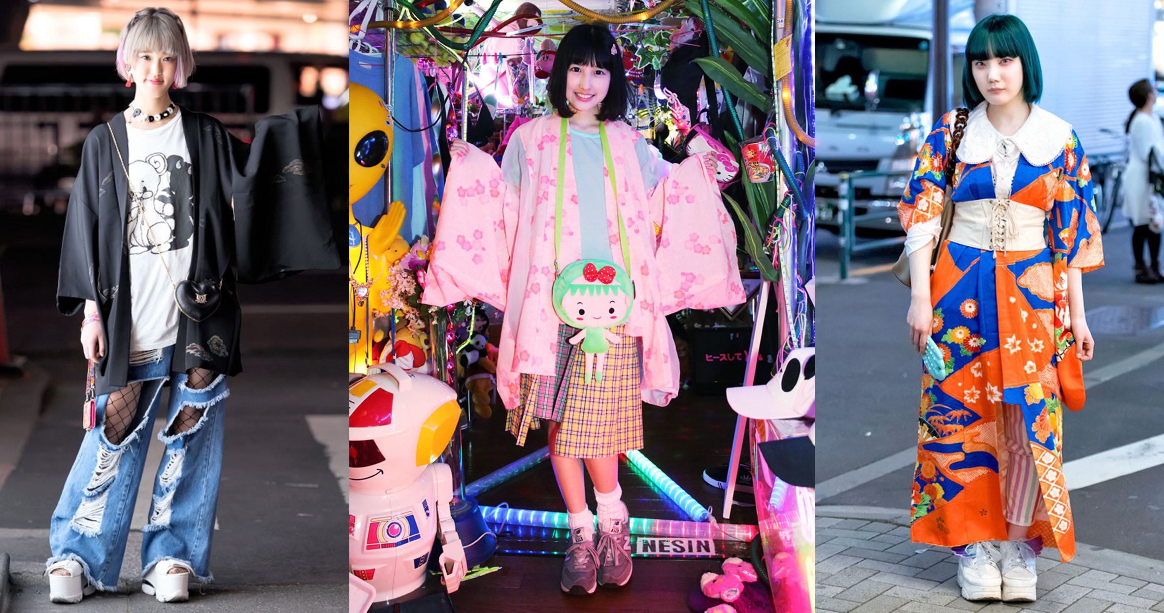Leurs tenues sont originales, décalées et colorées. Certaines marques emblématiques du quartier proposent même leurs propres modèles comme ACDC Rag, qui a sorti tout récemment une collection de haori (veste originellement portée par les hommes jusqu’à l’ère Meiji, puis par les femmes) aux motifs psychédéliques.